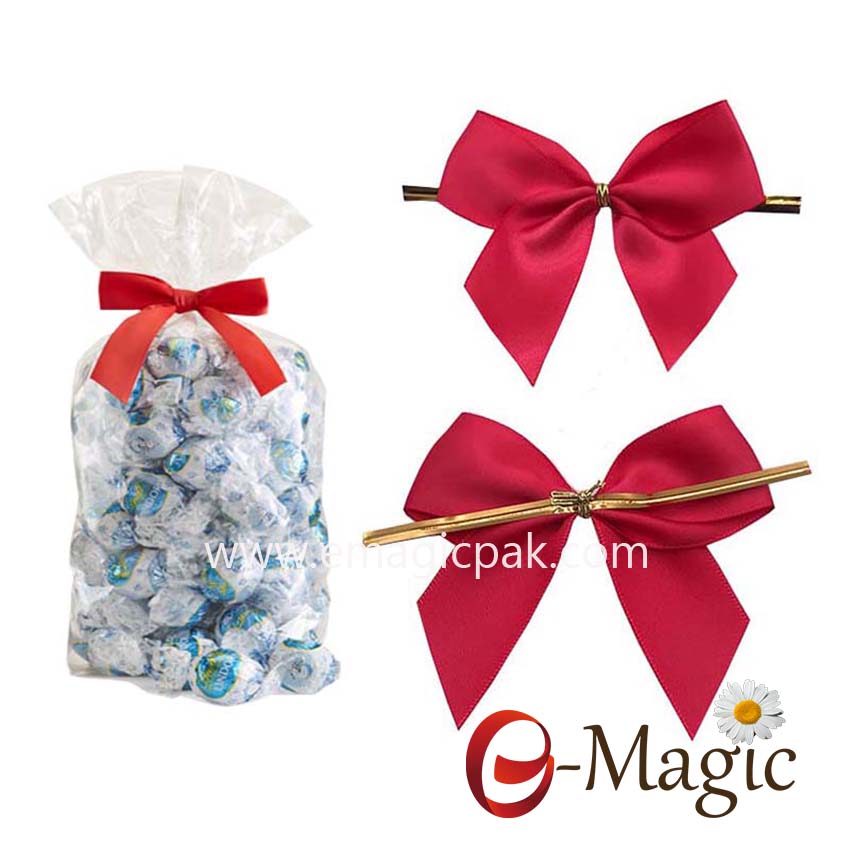 Packing Design-012 Red Satin Ribbon Wire Twist tied Bow for Candy Wrap